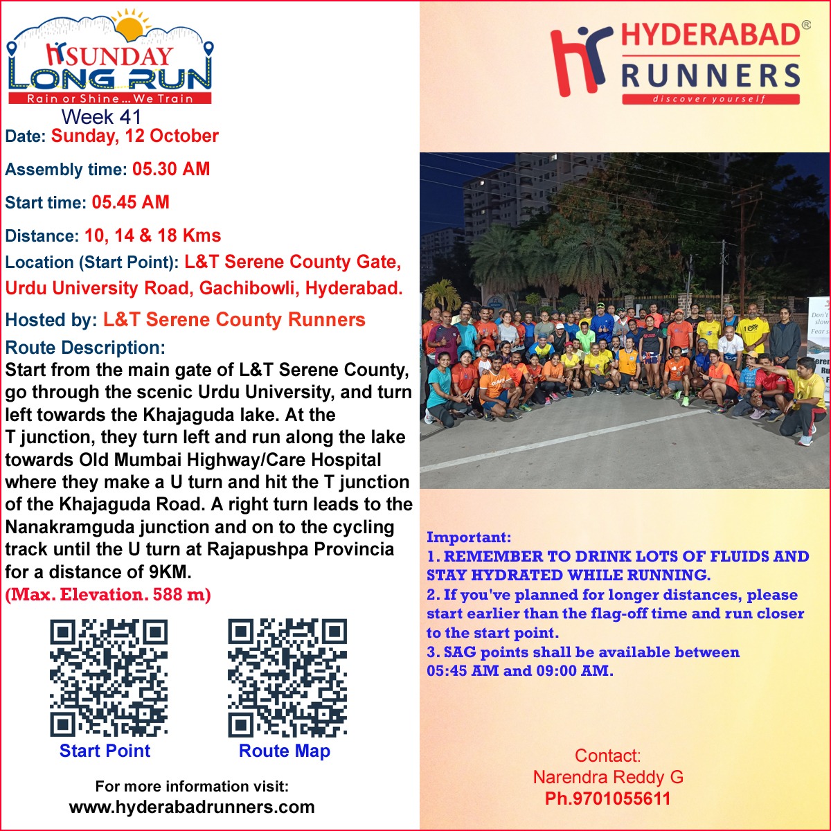 SUNDAY LONG RUN || 12th October 2025 || L&T Serene County Gate, Urdu University Road, Gachibowli
